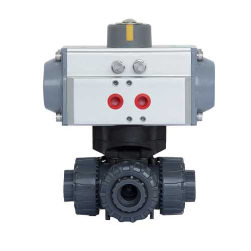 SEFORT氣動三通PVC球閥是SEFORT氣動執行機構和三通PVC球閥組成。氣動三通球閥分"T"型三通球閥和"L"型三通球閥,具有結構緊湊、外型美觀、密封性能好,它能實現對管道中介質流向的切換,也能使相互垂直的兩個通道連通或關閉。耐磨損、容易拆卸、方便維修等優點,閥體材質衛生無毒、耐腐蝕性強、重量輕、應用范圍廣,如一般純水和生飲水的管路系統、排水和污水管路系統、鹽水和海水管路系統、酸堿和化學溶液系統等多個行業。